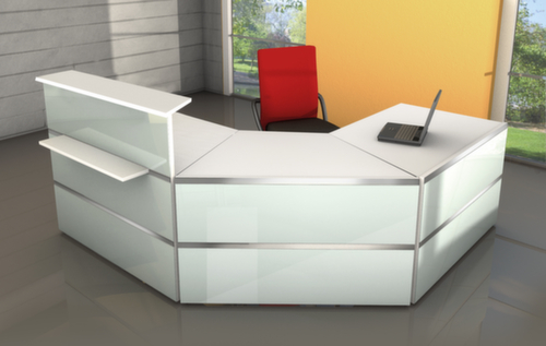 "metaDescription": "Kerkmann Banque d'accueil droite Atlantis - HxlxP 1080x1350x1015mm, panneau blanc, face avant blanc, face avant en verre",