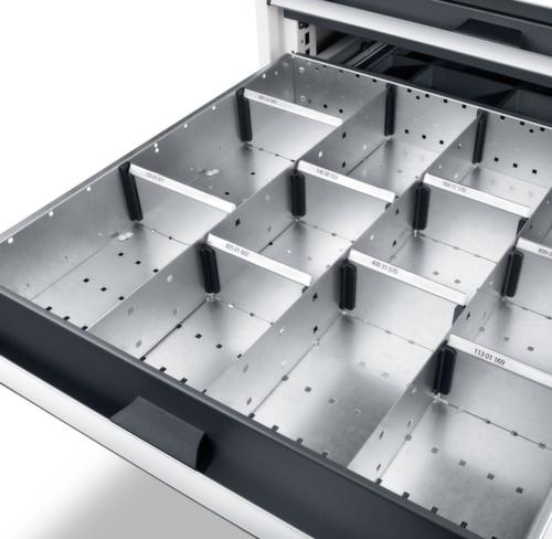 "metaDescription": "kit de compartimentage - 7sép.longitudinaux/5sép. en tôle, p. face avant H 75mm, p. armoire lxP 1050x650mm, lxP 1050x650mm",