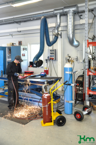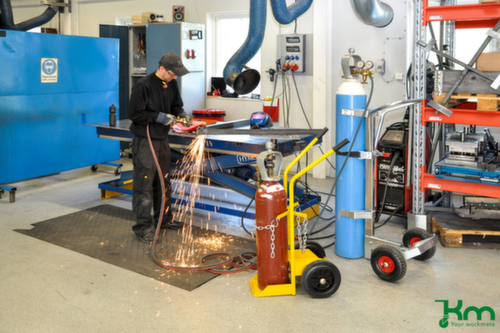 "metaDescription": "Kongamek Chariot à bouteilles, pour 2x20 l bouteille, bandage caoutchouc plein - force 150kg, 2x20l bouteille, chaîne de sécurité, protection contre basculement, jaune, bandage caoutchouc plein",