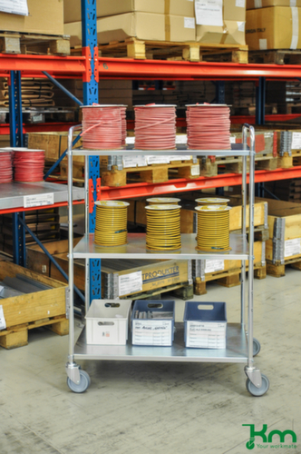 plateau(x) en métal. plateau(x) avec bord de protection, droit. châssis à galvanisation électrolytique. structure en acier. Manœuvre et déplacement aisés grâce à 4 roulettes pivotantes, Les freins des 2 roulettes pivotantes assurent une bonne stabilité. Ø de roue 125 mm. roues avec bandage TPE préservant le sol sur jante polypropylène robuste et incassable. moyeu avec roulement à billes de précision. boîtier en acier.Notre équipe du service clientèle se tient à votre disposition.