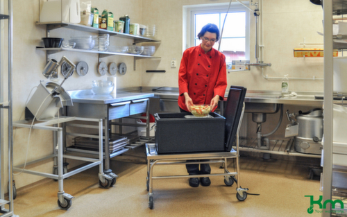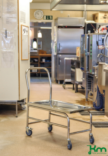 }Kongamek Chariot avec barre de poussée en acier inoxydable, force 100 kg, plateau longueur x largeur 735 x 390 mm