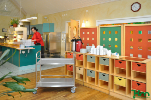 plateau(x) en acier inoxydable avec bord de protection en acier inoxydable sur tout le pourtour qui empêche la chute de verres, bouteilles ou autres charges transportés dans le chariot. structure en acier inoxydable. Manœuvre et déplacement aisés grâce à 4 roulettes pivotantes, 2 roues avec freins. Ø de roue 100 mm. roues avec bandage TPE préservant le sol. boîtier en acier. moyeu avec Palier de pivotement avec double couronne rotative à billes. Permet une rotation à 360°. disposition des roues rectangulaire.Notre équipe du service clientèle se tient à votre disposition.