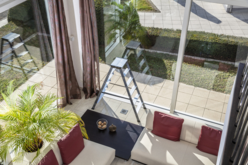 Les principales dimensions de Krause l’échelle MONTO® SePro D® en un coup d’œil :La connexion marches/lisse est sertissage hautement résistant. Ce système est plus stable et plus durable qu’un simple vissage. Le sertissage des marches dans les lisses permet d’obtenir une connexion solide, ce qui empêche tout vacillement ou glissement. Particulièrement robuste grâce aux assemblages articulés en acier solides et résistants aux chocs. application sûre grâce à sangles résistantes à la déchirure. Embouts antidérapants en extrémité de lisse. En aluminium, lisses anodisé. Ce système permet d’éviter de se salir les mains. En même temps, la surface anodisée permet un nettoyage facile. Dimensions à l'état posé : hauteur 1300 mm. poids 6,4 kg.