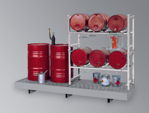 "longDescription": "<h2>Support de soutirage pour fûts et rack gerbable</h2><strong>offres prêtes à l'emploi</strong><br><ul><li>Convient aux substances polluantes pour l'eau et inflammables.</li><li><strong>Anticorrosion et stable</strong> - piètement en acier galvanisé</li><li><strong>Facile à transporter</strong> - avec fourreaux de fourches dès une largeur de 1390mm</li></ul><br><h3>Le choix vous appartient :</h3><ul><li><strong>Offres complètes pratiques ou offres personnalisées</strong> - avec supports-fûts soudés fixes ou tablettes en caillebotis</li><li><strong>Bacs de rétention adaptés</strong> - au choix comme bac de rétention à insérer, à poser ou à combiner</li></ul><br><strong>Bac de rétention à poser</strong><br><ul><li><strong>Exploitation du volume de rétention complet</strong> - avec caillebotis amovible et galvanisé à chaud</li><li><strong>Bonne stabilité</strong> - caillebotis avec rebord sur lequel le rayonnage gerbable est vissé</li><li><strong>Convient pour le transport par gerbeur</strong> grâce à la garde au sol pratique</li></ul><br><strong>Dispositions légales</strong><br>Construction des bacs de rétent. agréée par les autorités. Pour le stockage abrité de produits dangereux pour l’eau, inflammables (point d’inflammation > 55 °C) et agressifs.<br>",