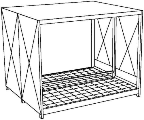 pour fût 20 x 200 litres max., sur palettes chimiques fût 16 x 200 litres et sur palettes européennes fût 12 x 200 litres, entreposage vertical. pour stockage en plein air. Convient pour substances dangereuses pour l'eau et inflammables. construction du conteneur agréée par les autorités. avec ventilation naturelle.