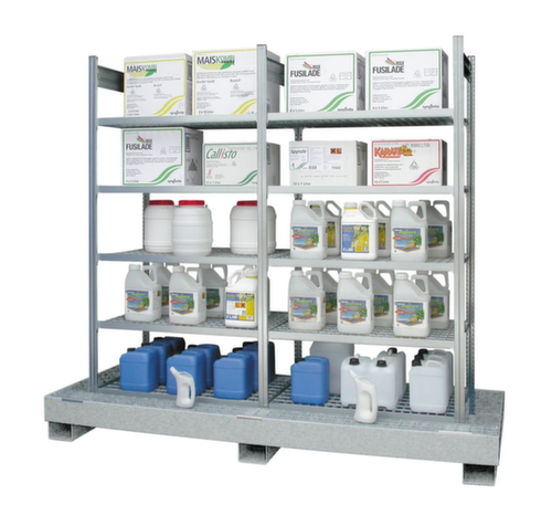 pour un stockage de bidons conforme à la réglementation substances dangereuses pour l'eau et inflammables à l'abri. système emboîtable - pour montage simple et sans outils.