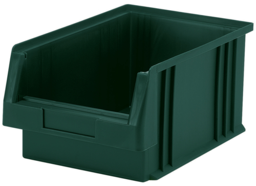 en polypropylène incassable en vert. mêmes tailles empilables. Adapté aux convoyeurs à rouleaux.