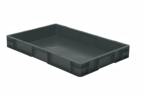 dimensions adaptées aux palettes européennes. en polypropylène incassable en gris. Parois plein, fond plein. Plusieurs niveaux gerbable. convient pour aliments. Adapté aux convoyeurs à rouleaux. Résistant à la température -20 °C à +80 °C.