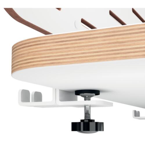 "metaDescription": "Leitz Plaque perforée Ergo pour table de bureau, hauteur 270 mm - p. table de bureau, HxlxP 270x800x103mm, p. épaiss. panneau jusqu'à 35mm, a. 2 crochets, montage sur table/suspension, MDF, blanc",