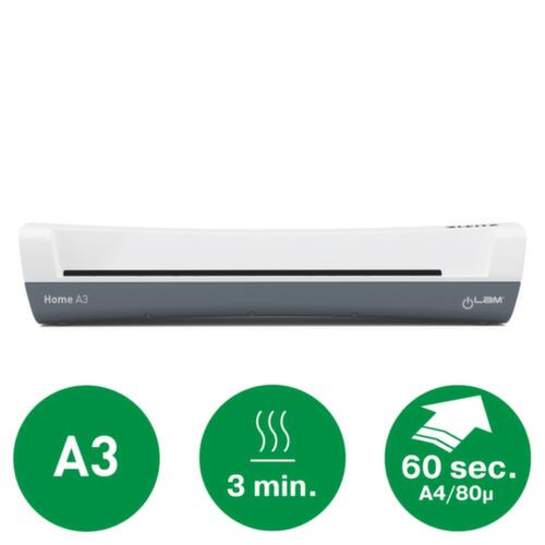 "metaDescription": "Leitz Plastifieuse iLAM Home - p. toutes les dimensions, 2 rouleaux, HxlxP 90x441x100mm, blanc",