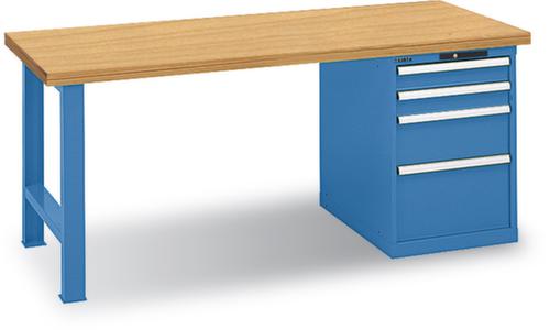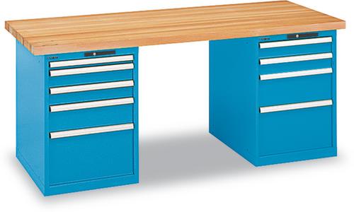 "description": "HxlxP 850x2000x800mm, plateau hêtre, force 360kg, 2 conteneurs, équipement : 9tiroirs, Key Lock",