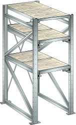 idéal pour le stockage sûr de marchandises lourdes, comme des moteurs, moules d’injection ou outils de poinçonnage, également pour un chargement avec engin de levage et palettes sur tous les niveaux, permettant un rangement particulièrement peu encombrant.