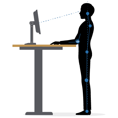 L'étape suivante vers un poste de travail ergonomique est un bureau ou une table d'appoint réglable en hauteur. Continuez à bouger et modifiez votre posture de travail, en passant de la position assise à la position debout et vice versa. Faites-en l'essai et posez votre téléphone sur la table debout, par exemple. Vous serez étonné de l'effet positif de ce changement actif sur votre bien-être général.