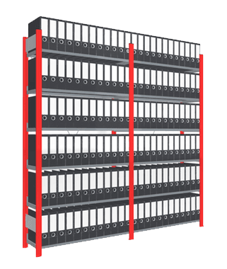 Les rayonnages de bureau et d'archives sont spécialisés dans le rangement des dossiers et autres fournitures de bureau et se caractérisent également par une capacité de charge élevée. Les racks de bureau et d'archives sont disponibles sous forme de racks à visser, à boulonner ou à ajouter.