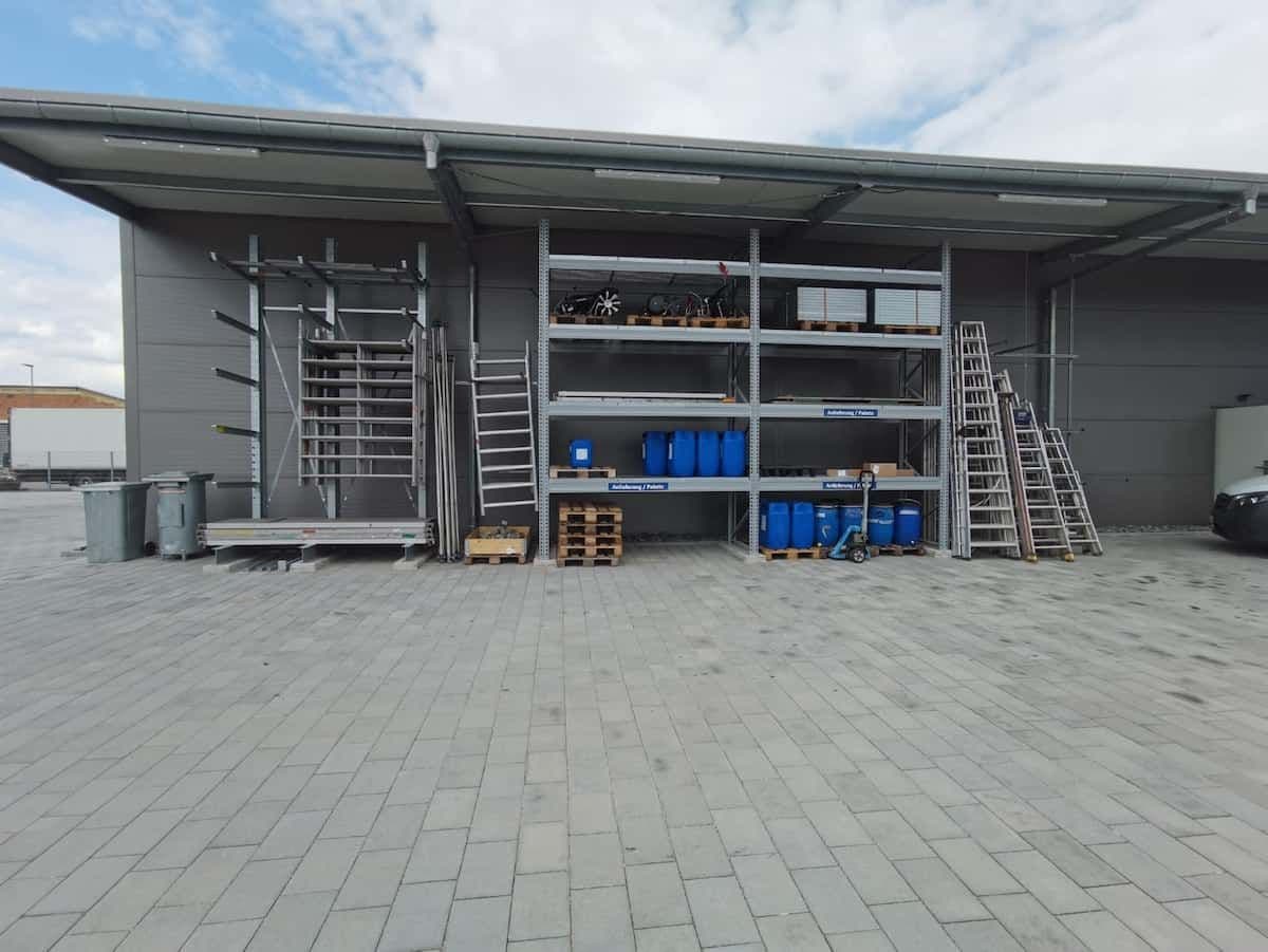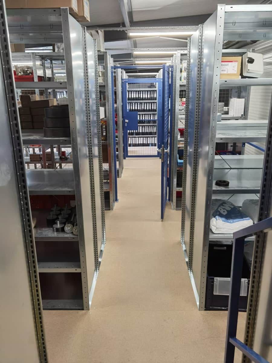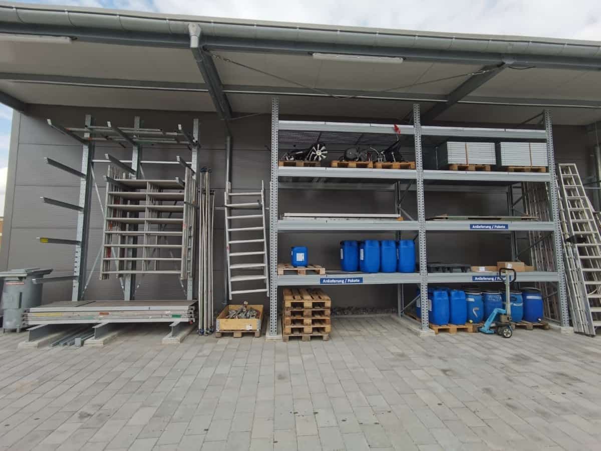 Livraison, installation et mise en service : Choix du fabricant : rayonnage META. Des rayonnages à double étage pour les accessoires de chauffage, des rayonnages cantilever pour les tuyaux de chauffage et des rayonnages à palettes pour les radiateurs complets.