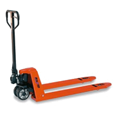 Un transpalette est un chariot industriel destiné à transporter des palettes, des cages à palettes ou autres convoyeurs. Ils peuvent être actionnés électriquement ou manuellement. Les transpalettes sont constitués de deux fourches de même longueur, qui servent à soulever et à porter les objets à transporter. Un timon ergonomique est utilisé pour diriger, lever, conduire ou abaisser.