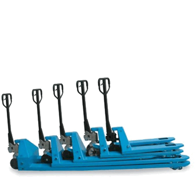 Notre gamme de produits comprend des lève-palettes d'une capacité de levage allant jusqu'à 5 000 kg et différentes longueurs de fourche de 0,45 m à 2,5 m.