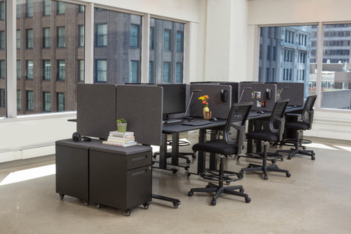 paroi arrière. Convient pour postes de travail de bureaux, notamment de bureaux ouverts. Le système de séparation offre de l'intimité et l'insonorisation nécessaire pour minimiser les distractions sans pour autant supprimer les atouts d'un échange communicatif.