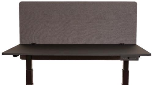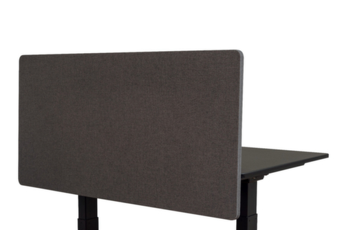 Les principales dimensions de LUXOR l'absorbeur acoustique RECLAIM en un coup d'œil :installation : À fixer sur la table à l'aide de pinces. paroi en en matériaux PET recyclés à 100 %, avec le noyau provenant à 60 % et la surface tissu à 100 % de matériaux recyclés après utilisation, coloris gris ardoise. surface punaisable. paroi de séparation rotatif, de sorte qu'une suspension est possible sous le panneau de table du bureau. Une conversion en écran est ainsi possible, par exemple pour dissimuler les câbles, et l'intimité est renforcée parce que les jambes ne sont pas visibles. paroi de séparation insonorisant - pour un meilleur environnement sonore. dessous avec 3 orifices de montage prépercés pour le réglage personnalisé de la hauteur du pare-vue.