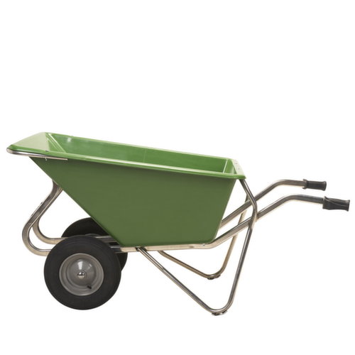 Les principales dimensions de la Matador brouette NOKA-160 en un coup d'œil :rehausses : Benne. Benne en polypropylène incassable coloris vert. structure en aluminium. poignée de sécurité avec protection des jointures. roue avec bandage air préservant le sol et silencieux sur jante acier. moyeu avec roulement à billes étanchéifié des deux côtés. Cette structure empêche la pénétration de particules de saleté dans le roulement.