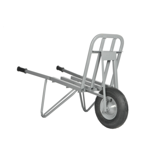 structure en acier. châssis laqué et avec finition peinture époxy anti-chocs et anti-rayures en gris. roue avec bandage air préservant le sol et silencieux sur jante acier. moyeu avec roulement à billes robuste à double étanchéité.
