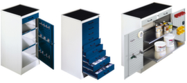 "metaDescription": "Matériel de compartimentage de tiroir - Bacs de rangement/séparateurs en tôle ou godets, en 2 hauteurs",