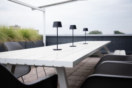 équipé de port USB pour le chargement. installation avec pied, pied Ø 110 mm. alimentation électrique 5 V, longueur de câble 1 m. lithium-phosphate de fer, puissance 6 Ah, durée de fonctionnement 10 heures, durée de charge 5 heures. en aluminium en noir. indice de protection IP54 : la poussière se dépose à l'intérieur, projections d'eau dans toutes les directions.