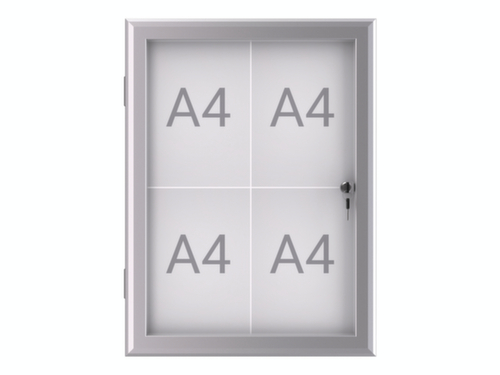 "description": "p. 4xDIN A4, HxlxP 696x522x28mm, portrait, paroi arrière acier, porte à battants, cadre alu",