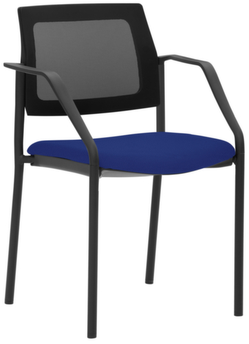 "metaDescription": "Mayer Sitzmöbel Chaise empilable myPLANO avec accoudoirs, assise tissu (100 % polyester), bleu moyen - 4 pieds noir, a. accoudoirs, assise tissu bleu moyen, Dossier maille noir",