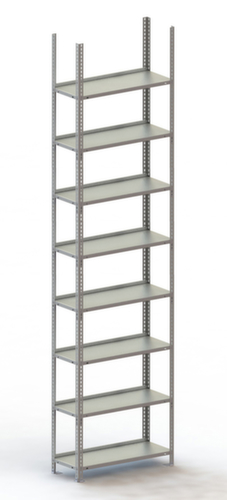 rayonnage de base avec 4 échelles sur pieds en acier, matériel de montage, nombre de tablettes indiqué dans l’offre