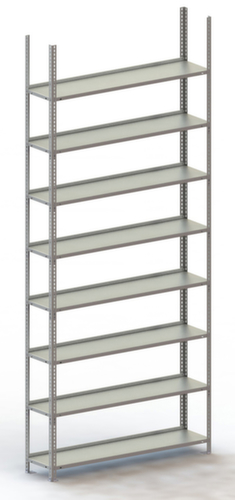 rayonnage de base avec 4 échelles sur pieds en acier, matériel de montage, nombre de tablettes indiqué dans l’offre