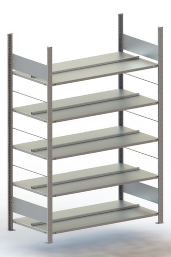 rayonnage de base avec 2 échelles, 1 bac de rétention et plateaux conf. à l’offre
