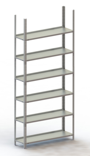 rayonnage de base avec 4 échelles sur pieds en acier, matériel de montage, nombre de tablettes indiqué dans l’offre