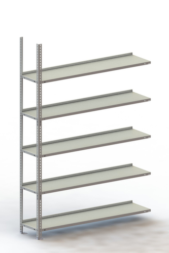 les principales dimensions du META rayonnage pour classeurs en un coup d’œil :Vous pourrez organiser au mieux vos dossiers, classeurs et autres outils de bureau sur 5 niveau(x) avec tablettes en tôle d’acier de qualité / 5 hauteurs de classeur. hauteurs de compartiments réglables par pas de 25 mm selon l’usage prévu et vos besoins. niveaux avec rebord antichute arrière contre la chute de classeurs. les canaux longitudinaux en forme de M à 5 pliages garantissent un degré élevé de stabilité et de protection contre les blessures. utilisation unilatéral - conçu pour un montage mural. structure en acier, montants avec revêtement en zinc anti-corrosion, niveaux avec revêtement en zinc anti-corrosion.