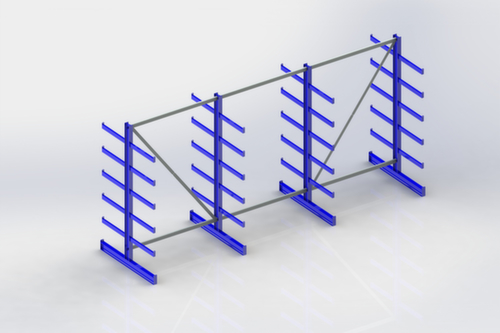 les principales dimensions du META du META rayonnage cantilever Atlas ST Atlas ST en un coup d’œil :utilisation bilatéral - possibilité d’installation flexible librement dans la pièce. 6 niveaux de stockage. 5 niveaux avec bras, avec rebord antichute. force par bras 200 kg. Bras de longueur identique, positionnement droit. profondeur utile 500 mm. structure en acier. montants décapé au jet de sable et finition peinture époxy en RAL5010 bleu gentiane. bras décapé au jet de sable et finition peinture époxy en RAL5010 bleu gentiane.