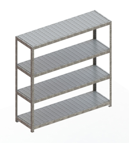 rayonnage de base avec 4 montants avec pieds emboîtables et plateaux conf. à l’offre
