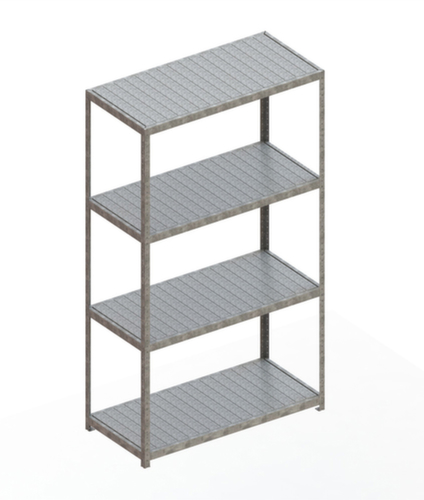rayonnage de base avec 4 montants avec pieds emboîtables et plateaux conf. à l’offre
