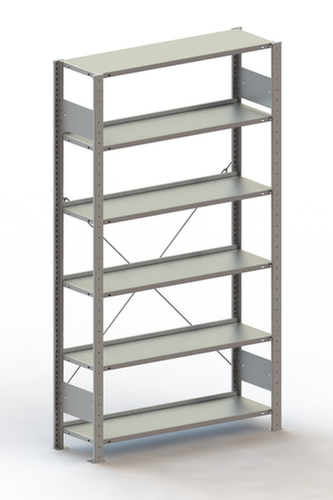 les principales dimensions du META du META rayonnage sans boulons en un coup d’œil :Vous pourrez organiser au mieux vos dossiers, classeurs et autres outils de bureau sur 6 niveau(x) avec tablette en acier / 5 hauteurs de classeur. niveaux avec rebord antichute arrière contre la chute de classeurs. hauteurs de compartiments réglables par pas de 25 mm selon l’usage prévu et vos besoins. les canaux longitudinaux en forme de M à 5 pliages garantissent un degré élevé de stabilité et de protection contre les blessures. utilisation unilatéral - conçu pour un montage mural. Stabilité élevée grâce aux croisillons. structure en acier. montants galvanisé avec finition peinture époxy antichocs et antirayures en RAL7035 gris clair. niveaux galvanisé avec finition peinture époxy antichocs et antirayures en RAL7035 gris clair.