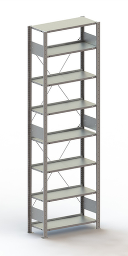 les principales dimensions du META du META rayonnage sans boulons en un coup d’œil :Vous pourrez organiser au mieux vos dossiers, classeurs et autres outils de bureau sur 8 niveau(x) avec tablette en acier / 7 hauteurs de classeur. niveaux avec rebord antichute arrière contre la chute de classeurs. hauteurs de compartiments réglables par pas de 25 mm selon l’usage prévu et vos besoins. les canaux longitudinaux en forme de M à 5 pliages garantissent un degré élevé de stabilité et de protection contre les blessures. utilisation unilatéral - conçu pour un montage mural. Stabilité élevée grâce aux croisillons. structure en acier. montants avec revêtement en zinc anti-corrosion. niveaux avec revêtement en zinc anti-corrosion.