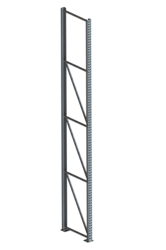 Les principales dimensions du META rayonnage à palettes à assembler en un coup d’œil :utilisation unilatéral - conçu pour un montage mural. structure en acier. montants avec revêtement en zinc anti-corrosion.