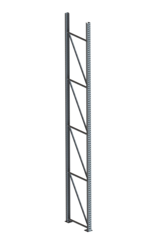 Les principales dimensions du META rayonnage à palettes à assembler en un coup d’œil :utilisation unilatéral - conçu pour un montage mural. structure en acier. montants avec revêtement en zinc anti-corrosion.