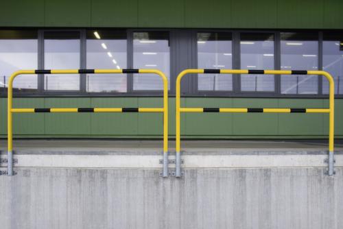 "longDescription": "<h2>Support de protection</h2><strong>pour montage sur surfaces verticales</strong><br><ul><li><strong>Effet de signalisation</strong> - avec revêtement plastique jaune avec bandes de signalisation noires</li><li>Robuste et durable - fabriqué en acier</li></ul><br><h3>Le choix vous appartient :</h3><ul><li>Résistant aux intempéries - galvanisé à chaud en plus pour une utilisation en extérieur.</li><li><strong>Protection durable ou passage temporaire</strong> - pour montage fixe (peut aussi être scellé dans le béton) ou amovible</li></ul>",