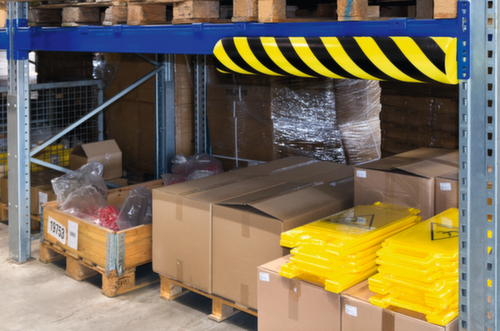 Pour une utilisation dans les domaines de l'entreposage, de l'expédition et de la production. Le butoir avertit de zones de danger sur les machines, rambardes, colonnes ou rayonnages. Les angles et les bords sont atténués, empêchant ainsi les accidents de travail et les blessures par choc .