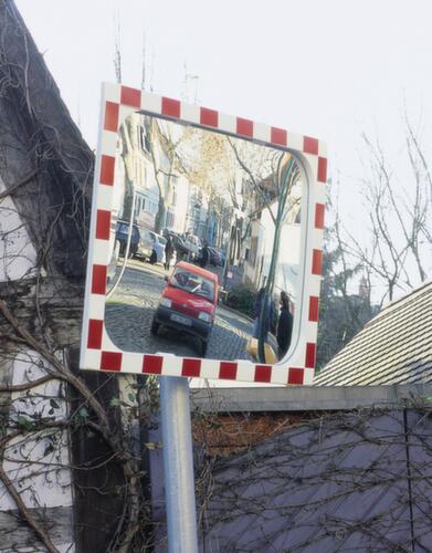 "description": "Hxl 600x800mm, visibilité max. 12m, miroir verre de sécurité, cadre plastique, rouge/blanc",