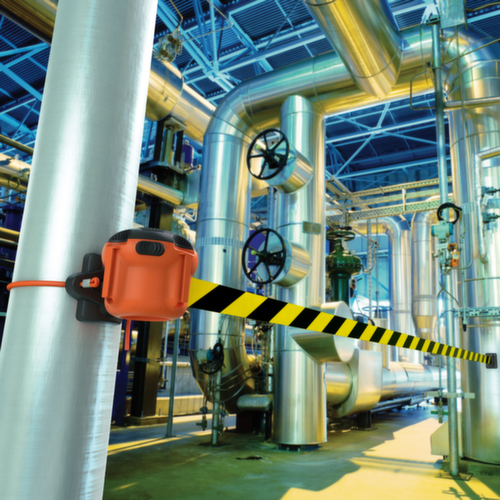 "metaDescription": "Moravia Porte-cordon pour corde de délimitation - p. sangle murale, p. corde de délimitation, fixation sur montants, plastique, noir/orange",