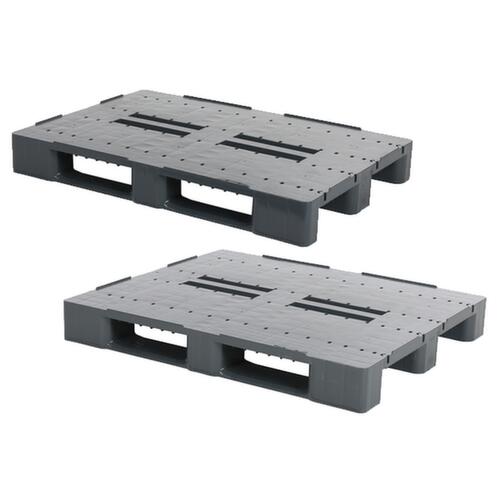 "description": "plastique recyclé, HxLxl 145x1200x1000mm, force stat. 5000kg, 3 patins, tablette supérieure ajourés, bordure de sécurité",