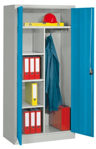Idéal pour une utilisation dans les bureaux ou également dans les bureaux d’atelier ou les bureaux d’entrepôt dans les zones de production et les entreprises artisanales. L’armoire polyvalente offre suffisamment d’espace de rangement pour les classeurs et autres fournitures de bureau, tout en laissant de la place pour les vestes, sacs, chaussures et autres effets personnels.