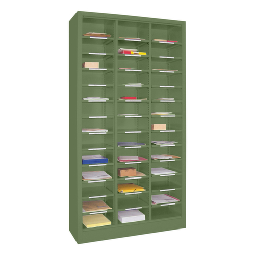 39 compartiments offrent un espace de rangement suffisant pour stocker et trier par ex. des papiers, consommables ou pièces de rechange. 3 compartiments par niveau. hauteurs de compartiments réglables par pas de 17 mm selon l’usage prévu et vos besoins. construction en acier avec finition époxy résistante aux chocs et aux rayures. niveaux en comme couleur du corps.