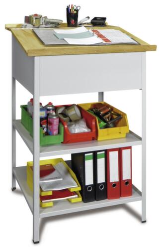 "longDescription": "<h2>Bureau debout</h2><strong>Compartiment de bureau avec étagère intermédiaire</strong><br><ul><li>Stable et robuste - construction en tôle d'acier soudée</li><li>Surface résistante aux rayures et aux chocs grâce à un revêtement en poudre de haute qualité.</li><li>Couvercle pliable en aggloméré huilé avec bord de roulement à l'avant et à l'arrière.</li></ul><br><h3>Vous avez le choix :</h3><ul><li>Rapidement à portée de main ou protégé - ouvert ou avec une armoire verrouillable</li></ul>",