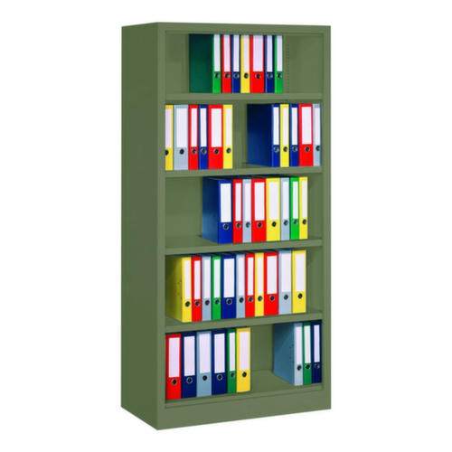 Espace de rangement facilement accessible pour les dossiers et documents de travail sur 5 hauteurs de classeur. 4 niveau(x) avec tablette en acier réglables selon vos besoin par pas de 17 mm. construction en tôle d'acier avec finition époxy résistante aux chocs et aux rayures. niveaux en comme couleur du corps.